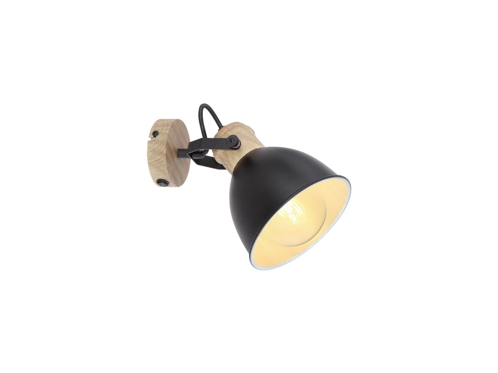 Nástěnné svítidlo, kov černý, kov v barvě imitující dřevo, hnědý, vypínač, ŠxV: 15x19cm, V:19cm, bez žárovky 1xE27, max. 40W 230VDoplňkové parametry