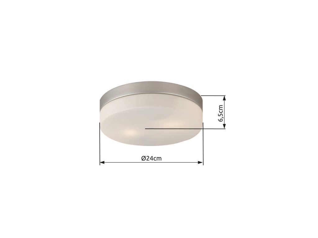 Stropní svítidlo, kov nikl matný, sklo bílé, Ø24cm, V:7cm, bez žárovek 2xE27, max. ILLU 40W 230V.Doplňkové parametry